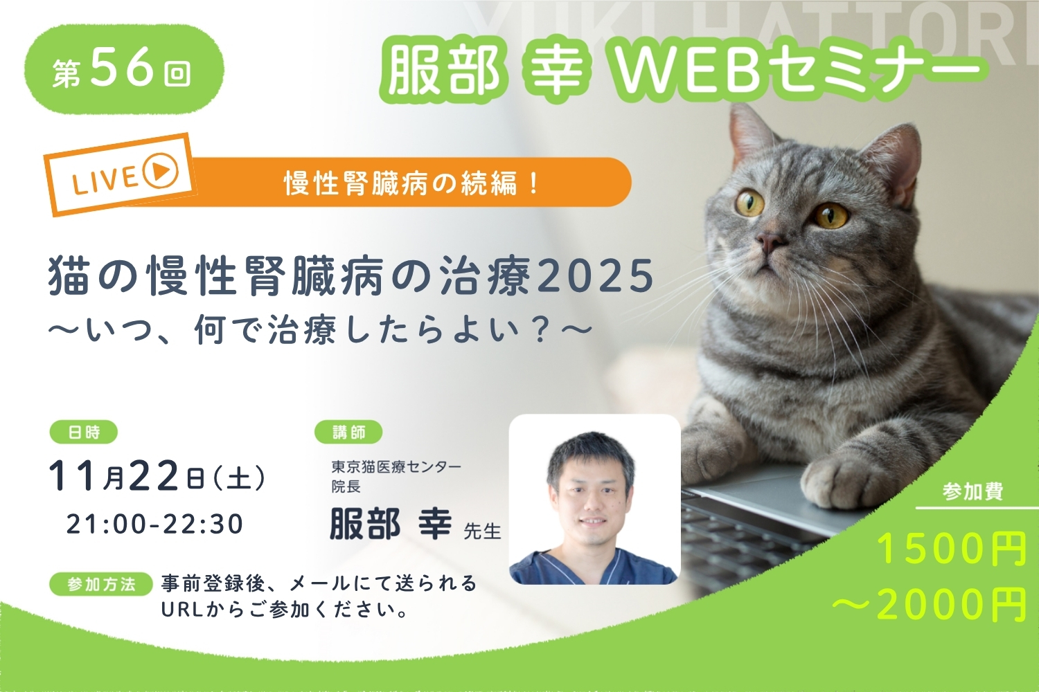 第56回 服部 幸先生WEBセミナー開催のお知らせです。 日時 11月22日(土)20:50~参加可能講演時間21:00...